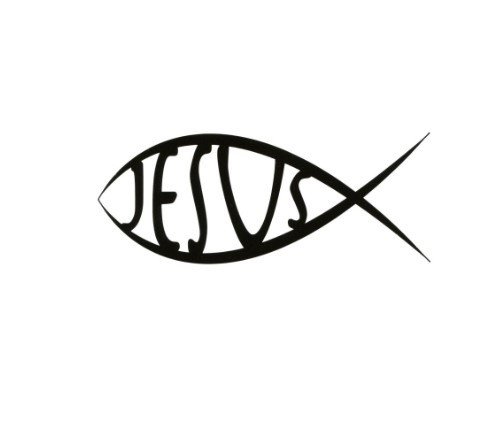 Autocollant représentant un poisson stylisé avec le nom de Jésus, de couleur noire sur fond transparent.