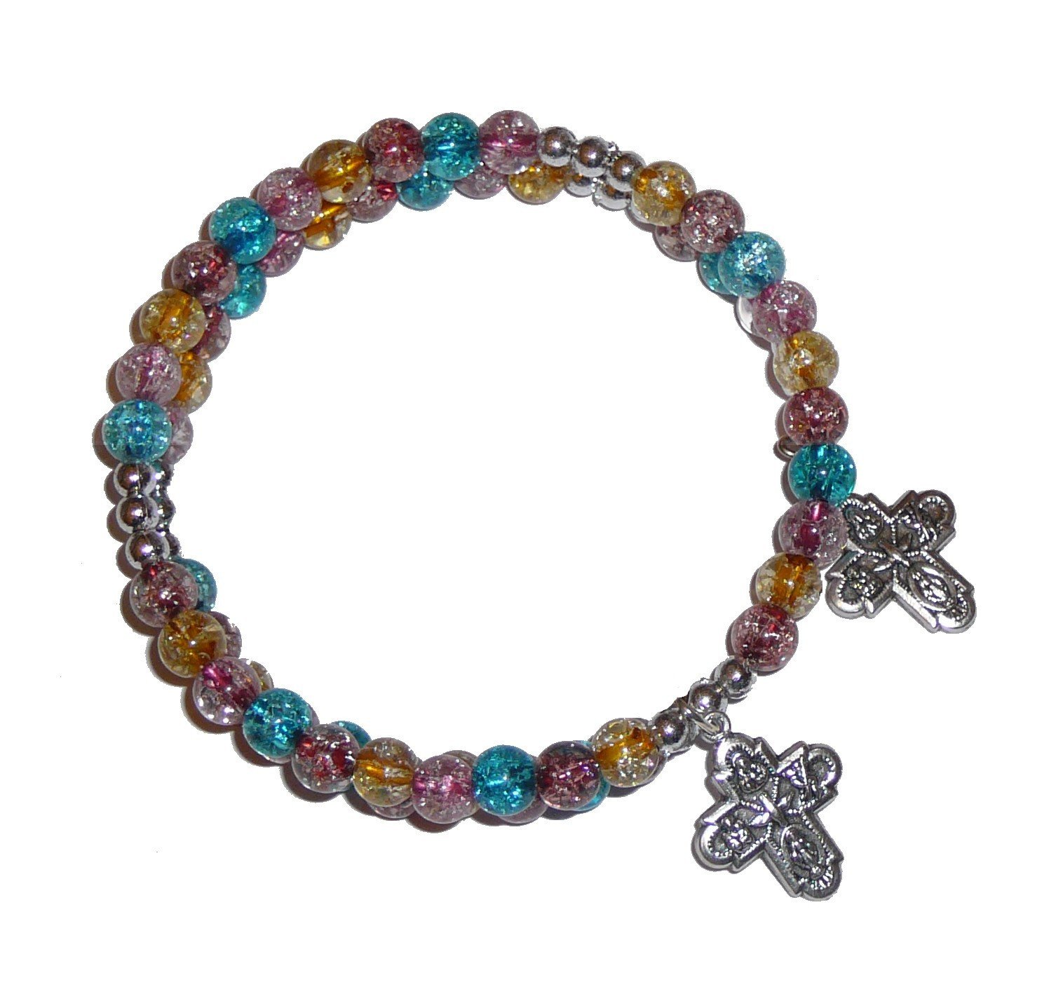 Bracelet chapelet ressort multicolore (5 dizaines), composés de deux croix en métal.