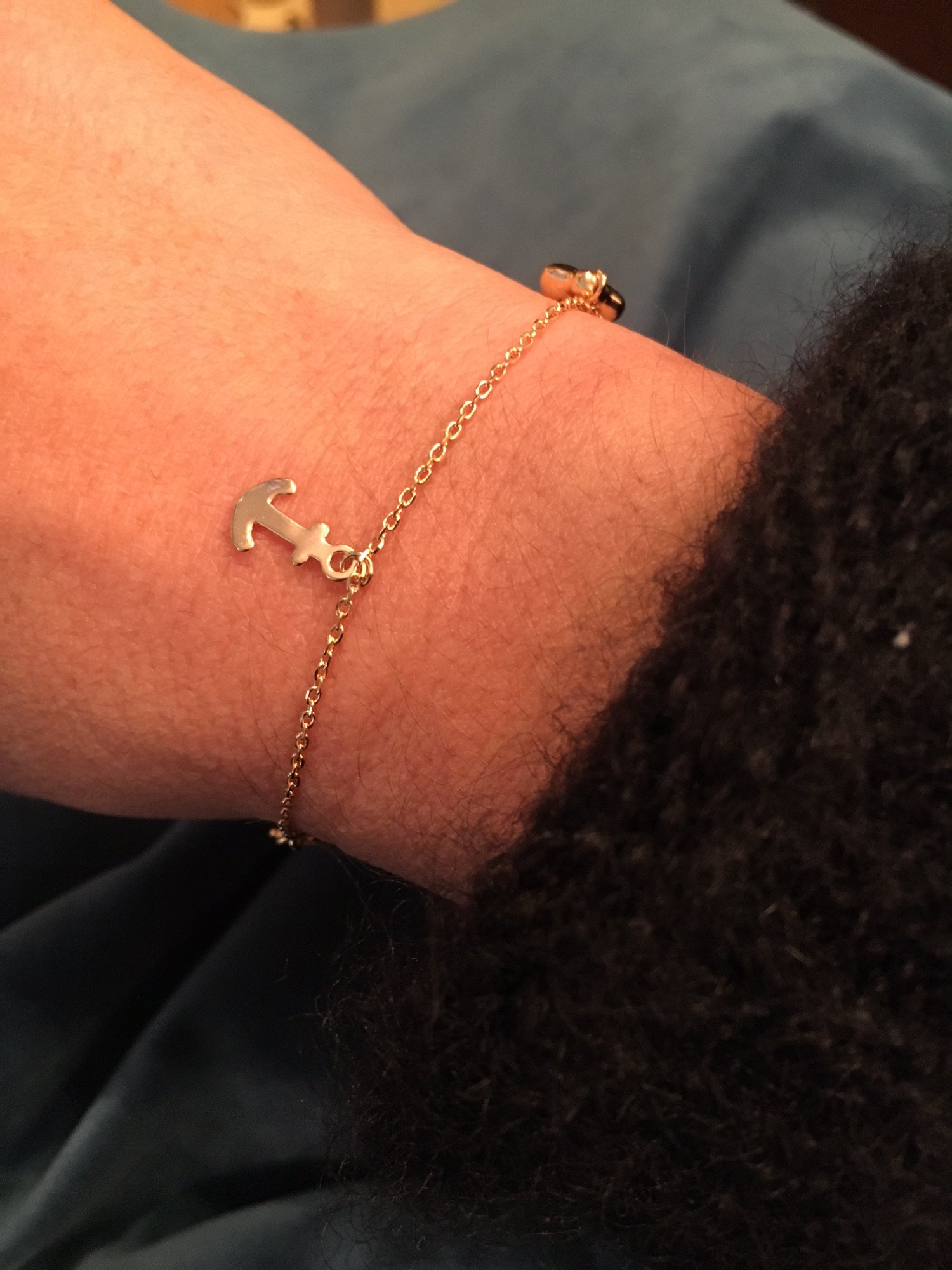 Ce joli bracelet Les 3 vertus est en plaqué or et orné de 3 breloques : une croix, un coeur et une ancre.
