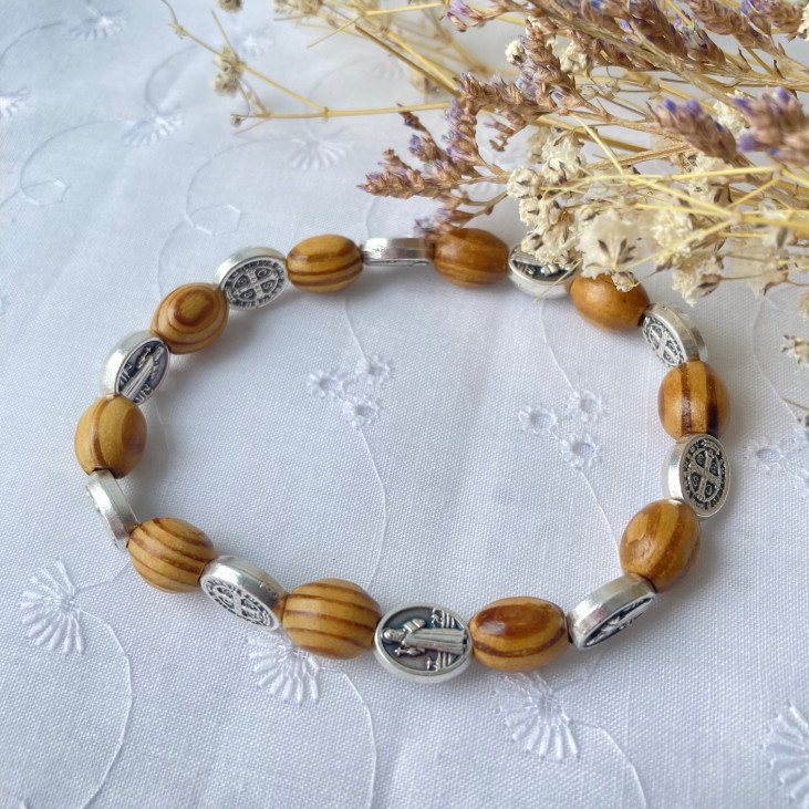 Portez ou offrez ce magnifique bracelet de Saint Benoit en bois d'olivier !
