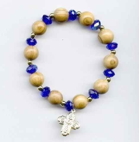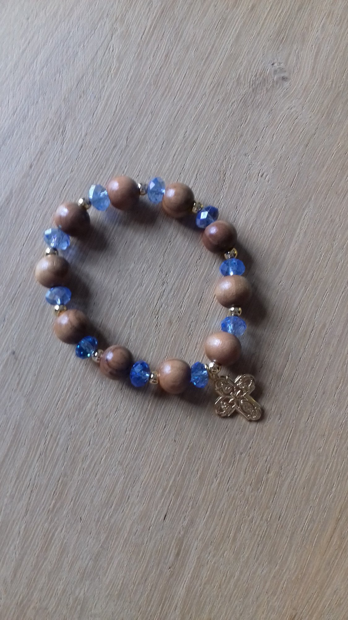 Joli bracelet composé de perles en bois de 9 mm ainsi que des perles en semi-cristal.