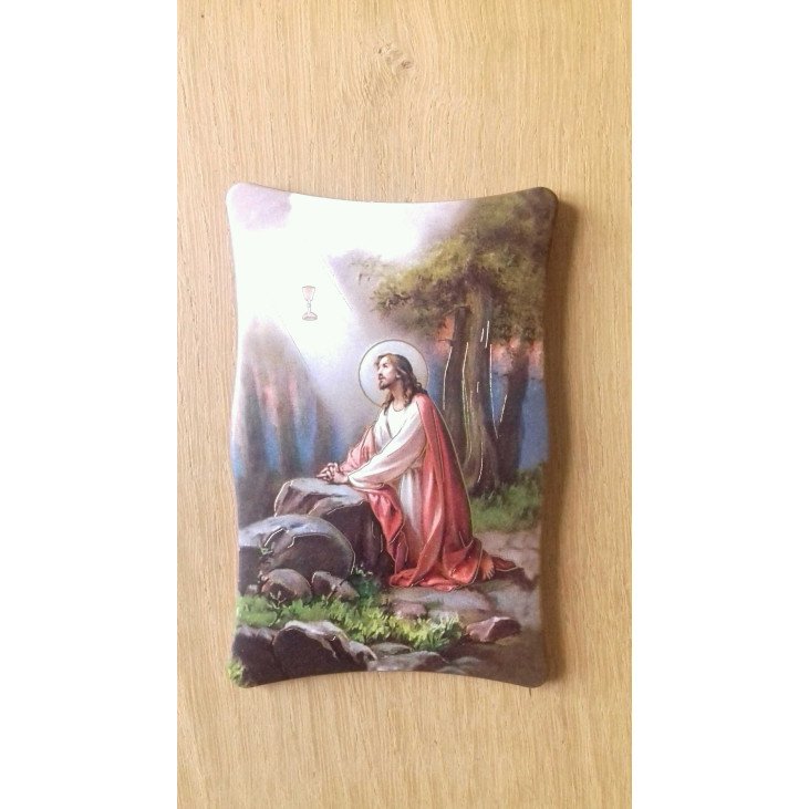 Les dimensions de ce cadre sont de 7 centimètres x 11 centimètres. Il pourra être posé sur un meuble ou sur une table (grâce à un porte icône) ou suspendu sur un mur par le biais de son petit crochet. Il s'agit d'une image collée sur un support en bois. Remarquez que les contours du cadre ne sont pas droits comme ceux d'un cadre traditionnel, pour une petite touche d'originalité.
