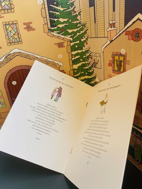 Plus qu’un simple décompte avant Noël, ce calendrier devient un véritable support de prière familiale. Chaque fenêtre ouverte peut être l’occasion d’un temps de recueillement : les prières du livret accompagnent ce calendrier et jalonnent ainsi chaque journée de l'Avent. Elles visent à faire grandir petits et grands dans l'amour quotidien, et l'attention aux gens qui nous entourent.