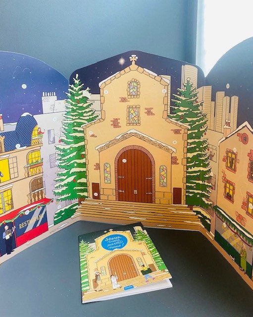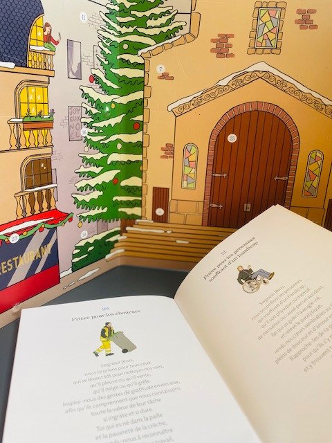 Ce calendrier de l’Avent invite petits et grands à vivre l’attente de Noël dans la joie et la prière. Jour après jour, la scène se construit devant l’église : le boulanger, la maîtresse, le facteur ou le livreur prennent place autour de la crèche, rappelant que le Christ vient pour tous.