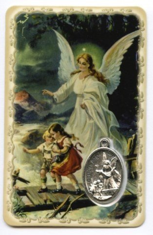 La carte est plastifiée, ainsi elle ne craint ni la pluie ni les tâches : elle s'abîmera beaucoup moins vite. En ce qui concerne son aspect visuel, elle est imprimée en couleur. Au recto, vous pouvez observer l'image de l'Ange Gardien. A cette image vient s'ajouter une médaille argentée de l'Ange Gardien. Au verso, comme sur toutes les cartes, vous pourrez lire la prière qui va avec l'image. Les dimensions de la carte de prière sont de 5,4 centimètres par 8,5 centimètres: grâce à sa petite taille, vous pourrez ainsi l'emmener partout avec vous. Cette carte sera parfaite dans votre portefeuille (elle est au format carte de crédit), dans votre voiture, ou partout ailleurs. Bénéficiez de la protection dont vous avez besoin avec cette petite carte de prière et sa médaille !