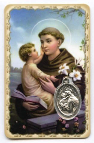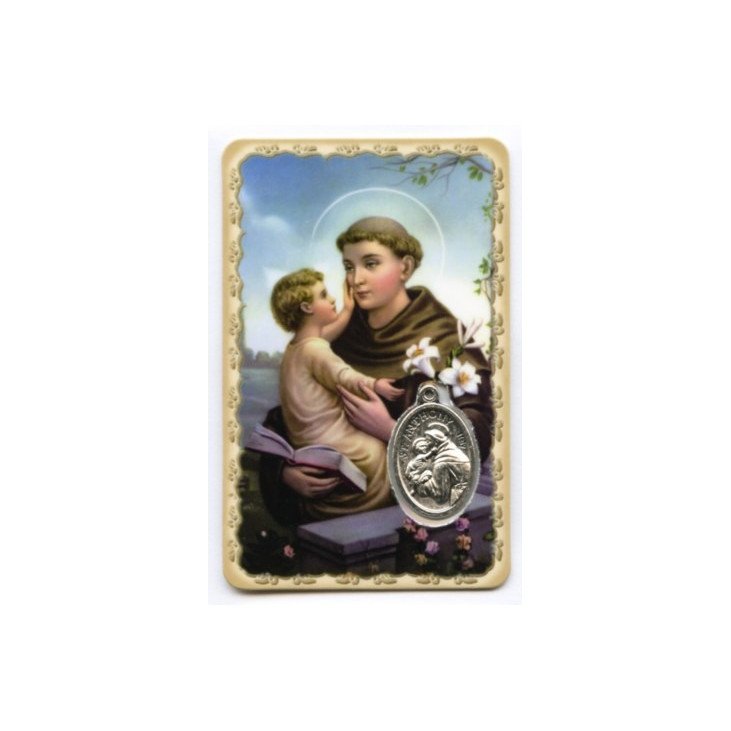 Carte de prière avec médaille en métal - Saint Antoine