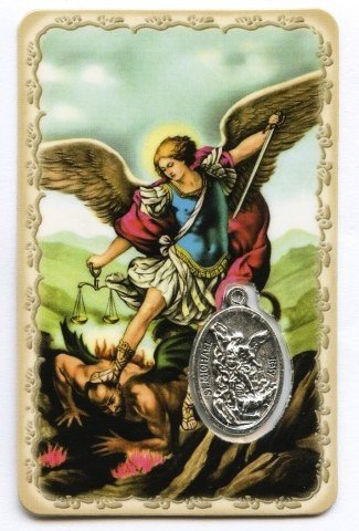 Très belle carte de prière ! Offerte à mon filleul pour être protégé par St Michael. Glissée dans une poche, elle a la taille parfaite !