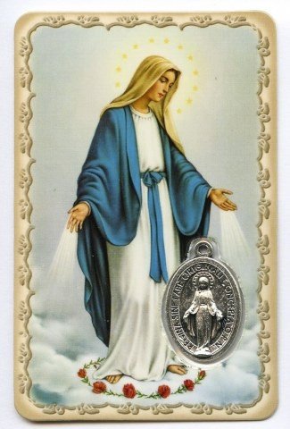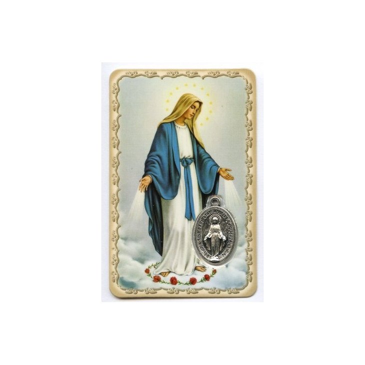 Carte de prière avec médaille en métal - Vierge Miraculeuse