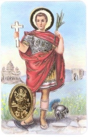 La carte est plastifiée, ainsi elle s'abîmera moins. En ce qui concerne son aspect visuel, elle est imprimée en couleur. Observez la douceur du dessin et de l'atmosphère qui s'en dégage. Au recto, vous pouvez observer l'image de Saint Expédit. A cette image vient s'ajouter un poinçon doré, semblable à une médaille de Saint Expédit. Au verso, comme sur toutes les cartes, vous pourrez lire la prière qui va avec l'image. Les dimensions de la carte de prière sont de 5,4 centimètres par 8,5 centimètres : grâce à sa petite taille, vous pourrez ainsi l'emmener partout avec vous. Cette carte sera parfaite dans votre portefeuille, dans votre voiture, ou partout ailleurs.