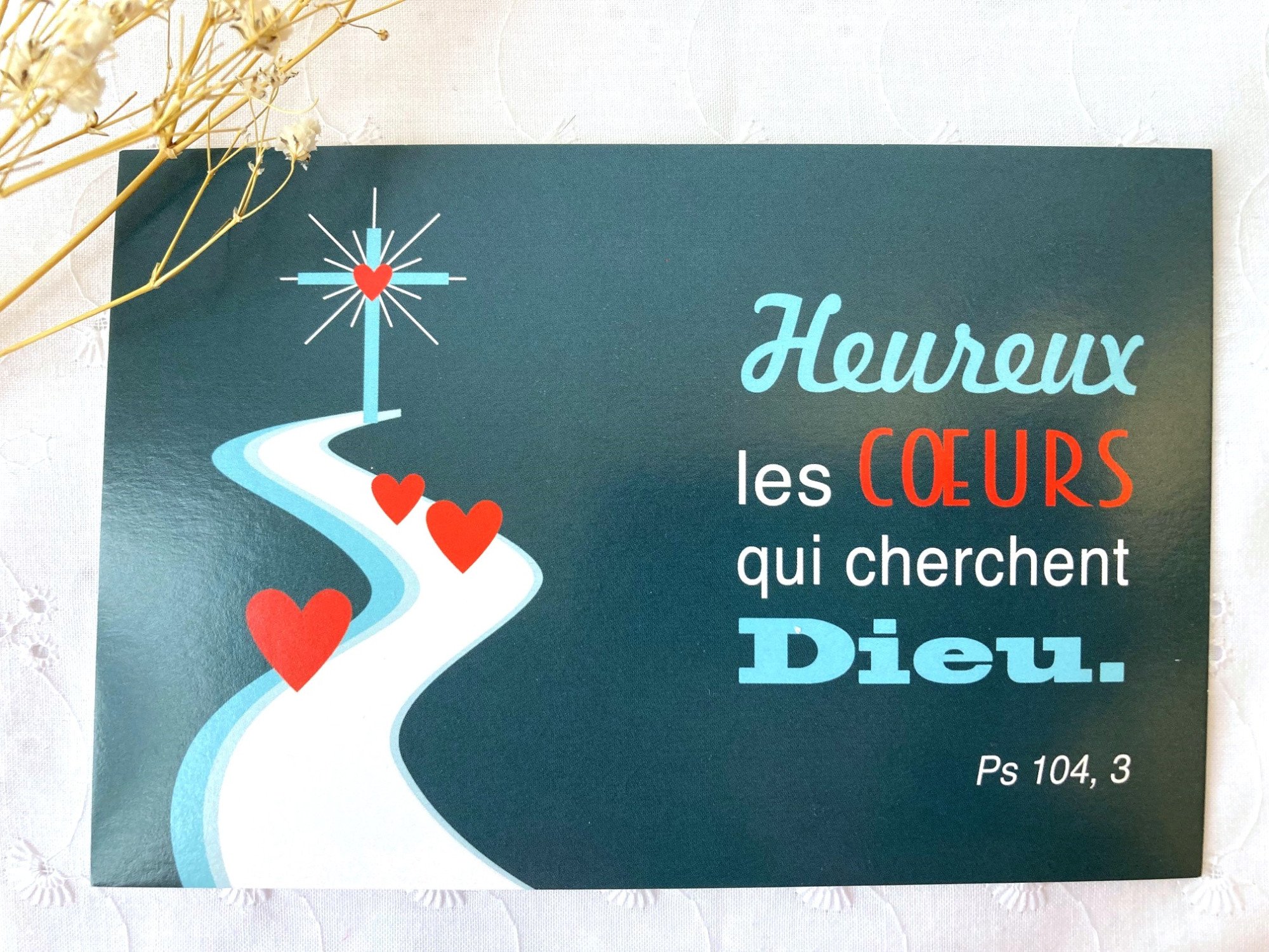 Carte Postale à Message Biblique – "Heureux les cœurs qui cherchent Dieu" – Psaume 104, 3