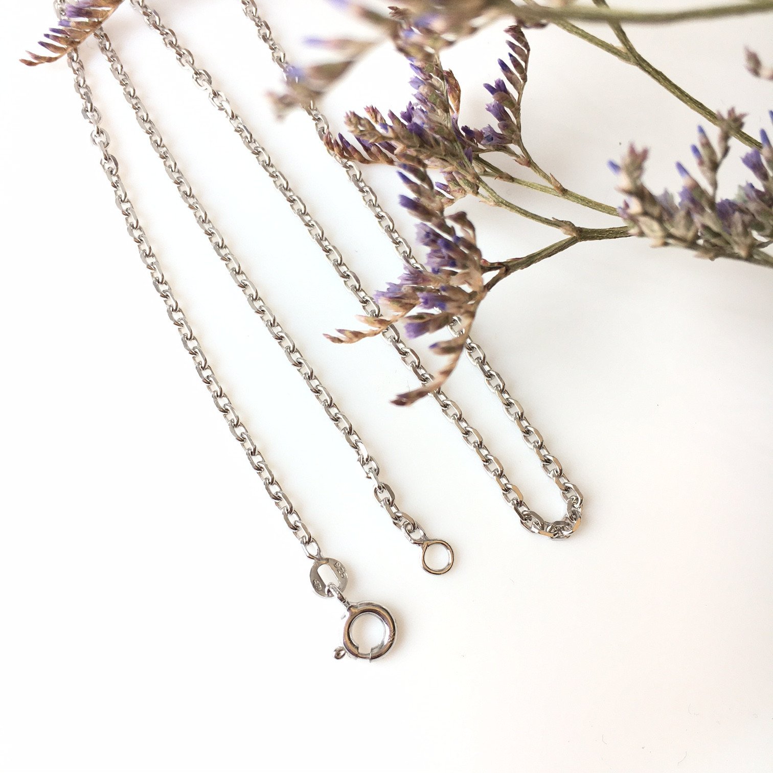 Voici une chaîne classique et solide avec un type de maille forçat de 2.2 mm ou 2.5 mm d'épaisseur en argent 925, et mesurant 50 cm de long.