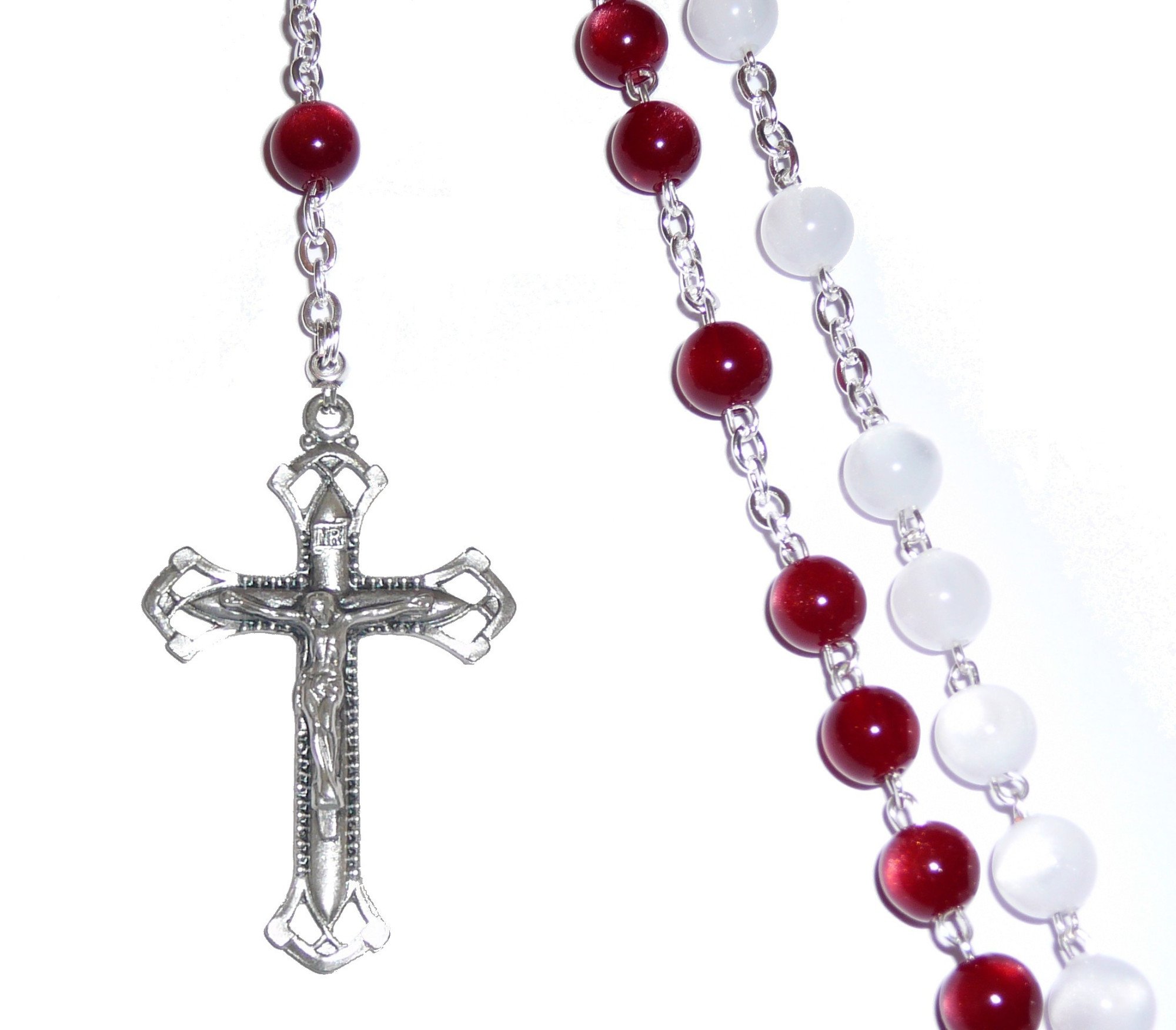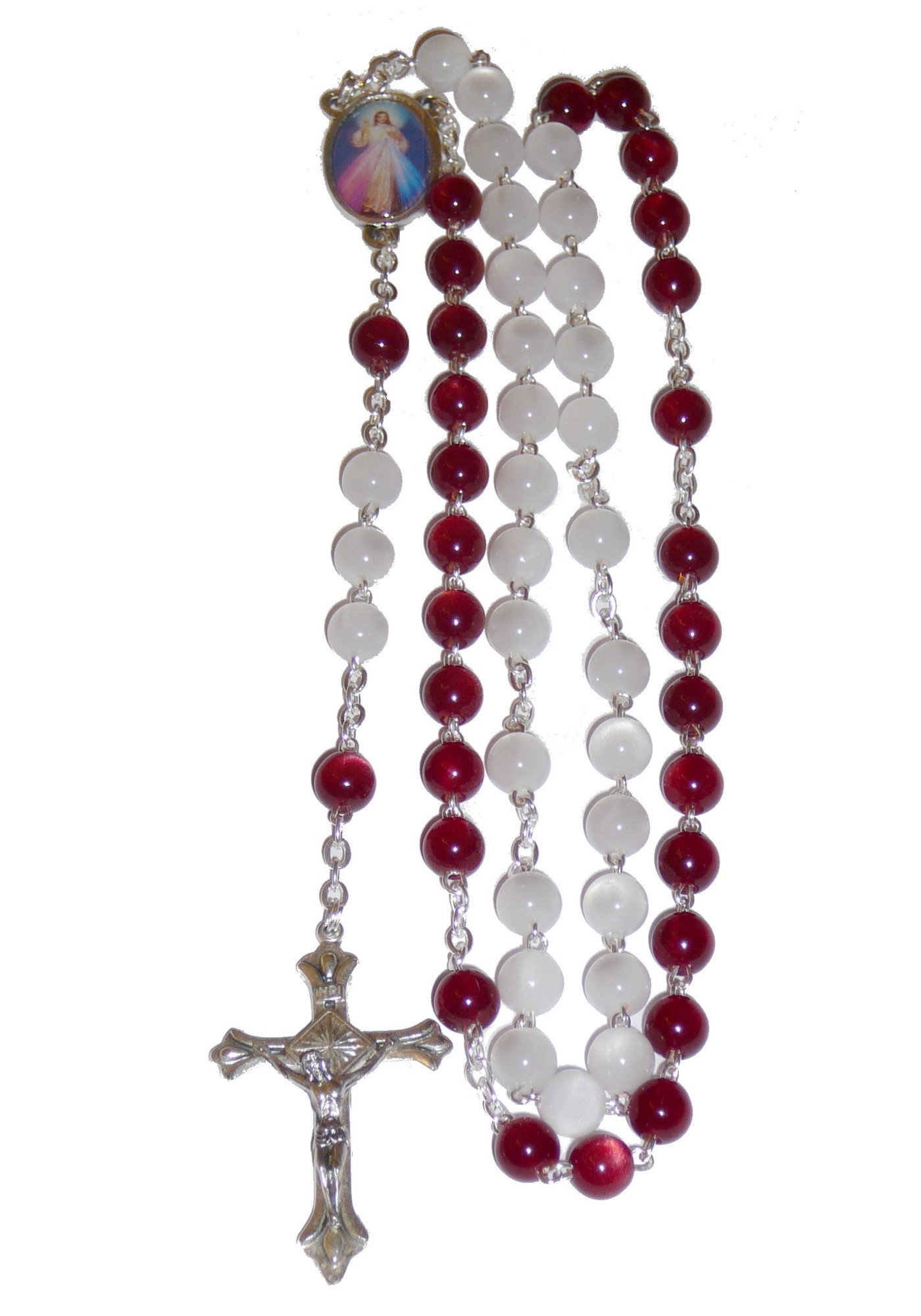 Chapelet Christ Miséricordieux - Blanc & rouge
