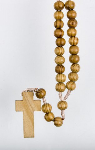 Chapelet en bois sur corde - Bois d'olivier clair - 38 cm