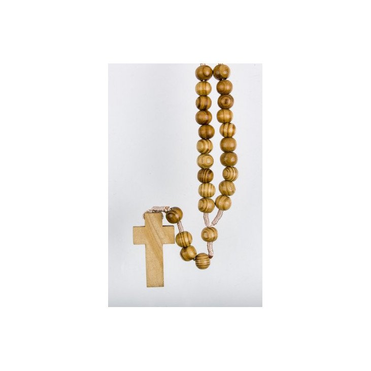 Adoptez ce très beau chapelet de belle qualité, monté sur corde claire et composé de gros grains en bois d'olivier d'un diamètre de 10 mm.