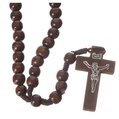 Convenant aussi bien aux adultes qu'aux enfants, ce chapelet en bois sur corde marron foncé, d'un format classique très pratique, vous accompagnera partout !