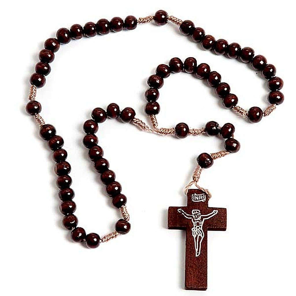 Très joli chapelet franciscain sur corde marron foncée, composé de grains en bois de couleur marron foncé d'un diamètre de 6 mm.