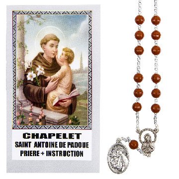 Adoptez ce chapelet de dévotion à Saint Antoine de Padoue, en résine de couleur marron, monté sur chaîne indécrochable en aluminium. Le chapelet est livré avec une notice vous proposant la prière à Saint Antoine et l'explication du chapelet.