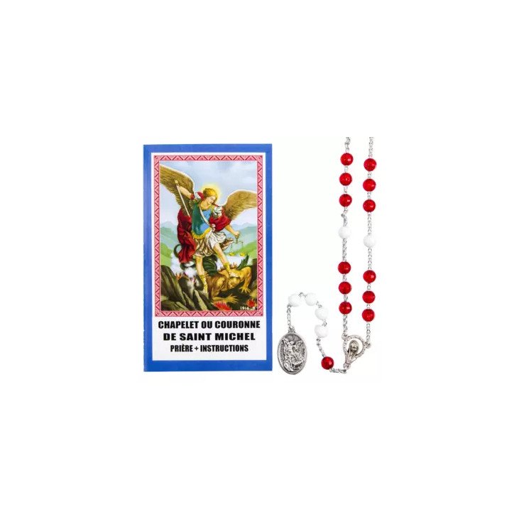 Adoptez ce chapelet de Saint Michel Archange rouge et blanc livré avec sa notice explicative.