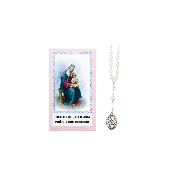 Chapelet ou couronne de dévotion à Sainte Anne, mère de la Vierge Marie, livré avec sa notice explicative.