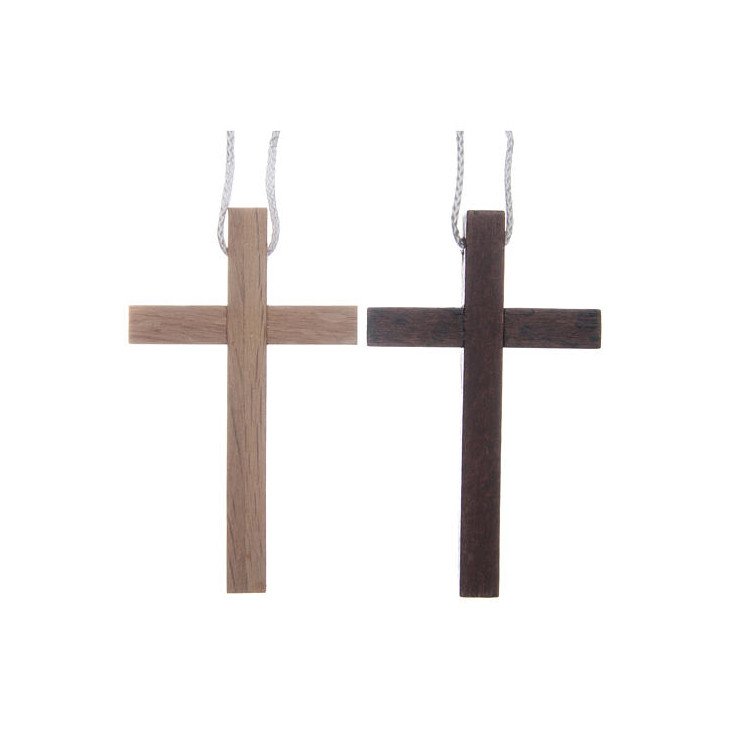 Cette Croix d'aube en bois foncé ou en bois clair est livrée avec un cordon blanc de 71 cm.