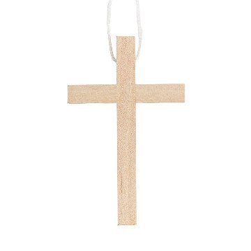 Voici une croix d'aube classique et épurée, en bois clair, livrée avec son cordon.