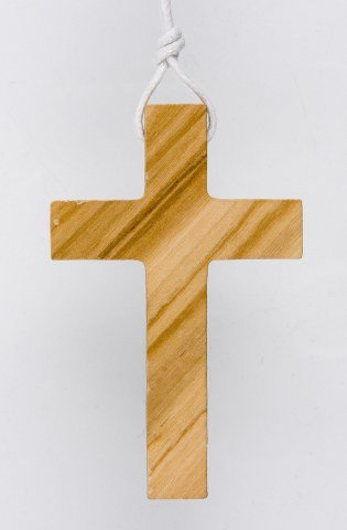 Croix d'aube bois d'olivier avec fin cordon - 8 cm