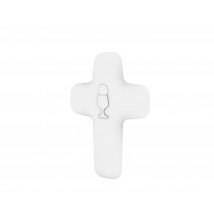 Cette jolie croix est en albâtre, une pierre blanche d'une grande pureté, à l'aspect velours mat, qui évoque la douceur et la paix, la sérénité. Ses lignes sobres et son dessin stylisé représentant le calice et l'hostie, sont résolument contemporains et authentiques, et expriment bien la présence de Dieu au centre de nos vies, ainsi que la puissance et la profondeur du mystère de la présence de Dieu dans l'Hostie.