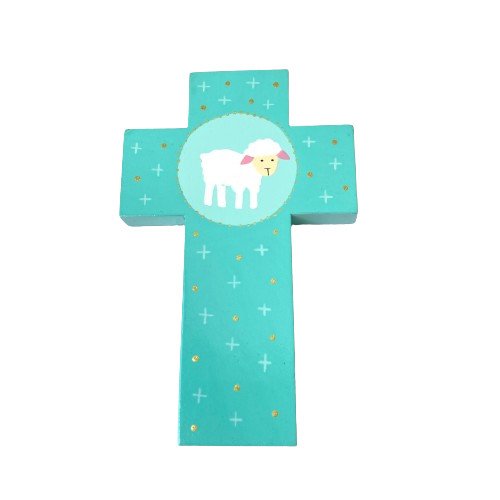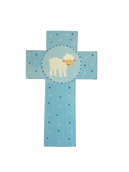 Croix en bois pour enfant - Agneau