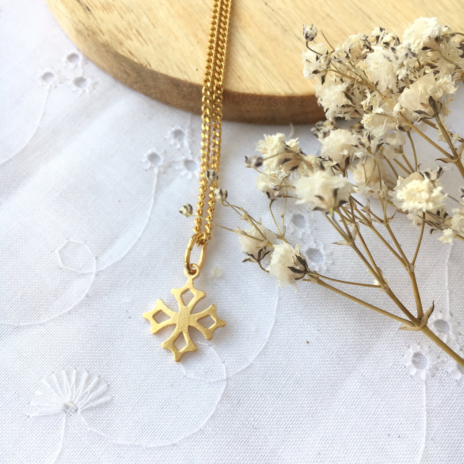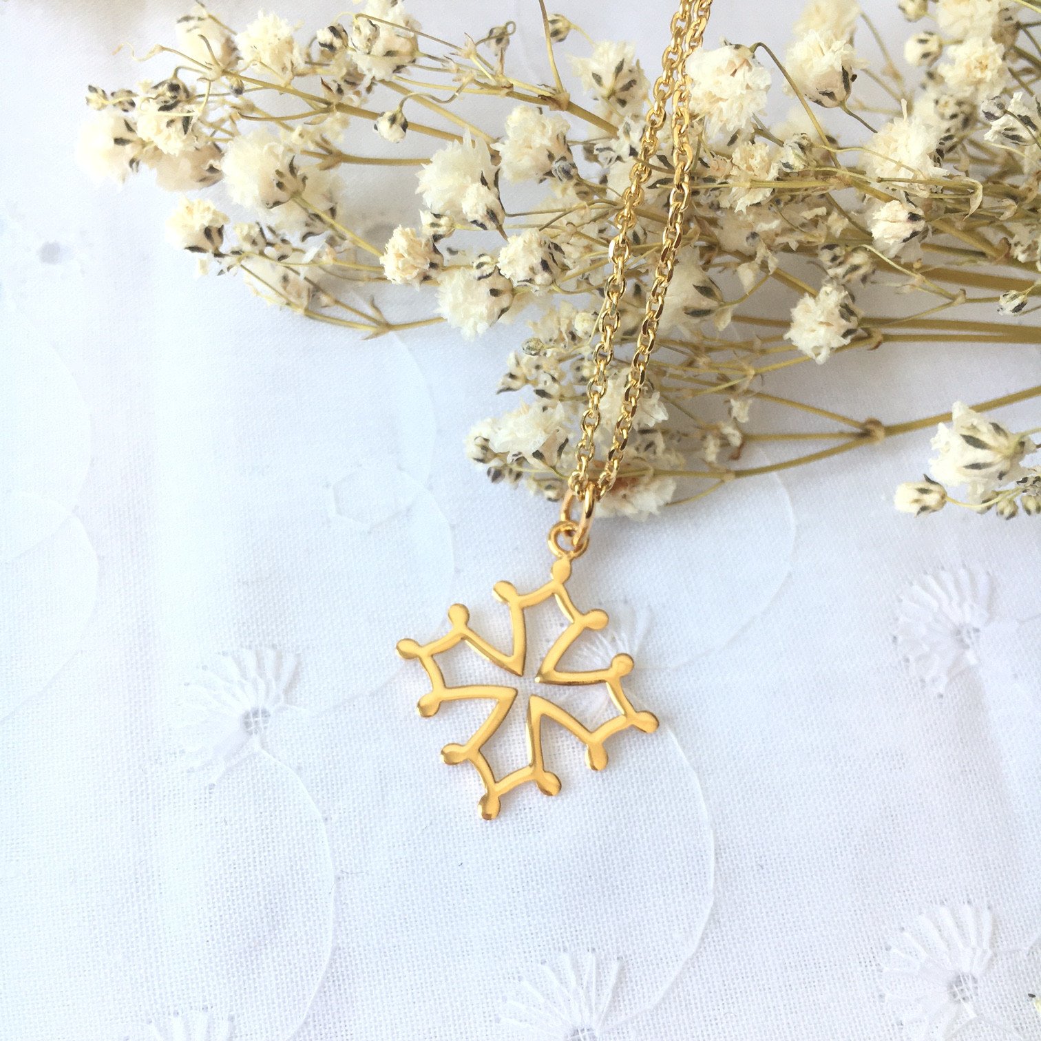 Elégante et originale, cette croix occitane en plaqué or est facile à porter partout et en toutes circonstances !