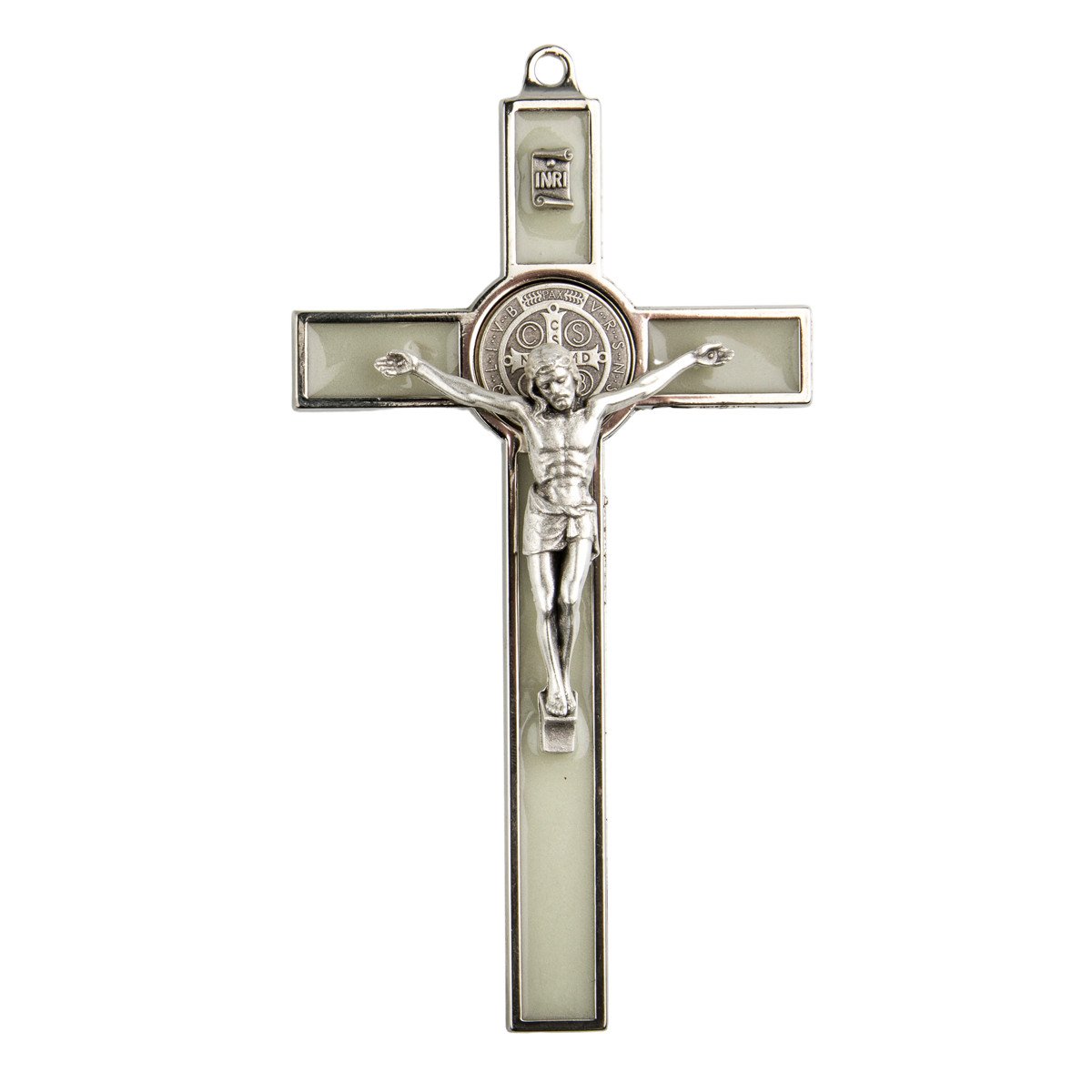Crucifix de Saint Benoit - émail blanc - 12 cm
