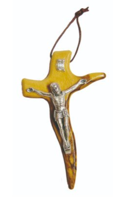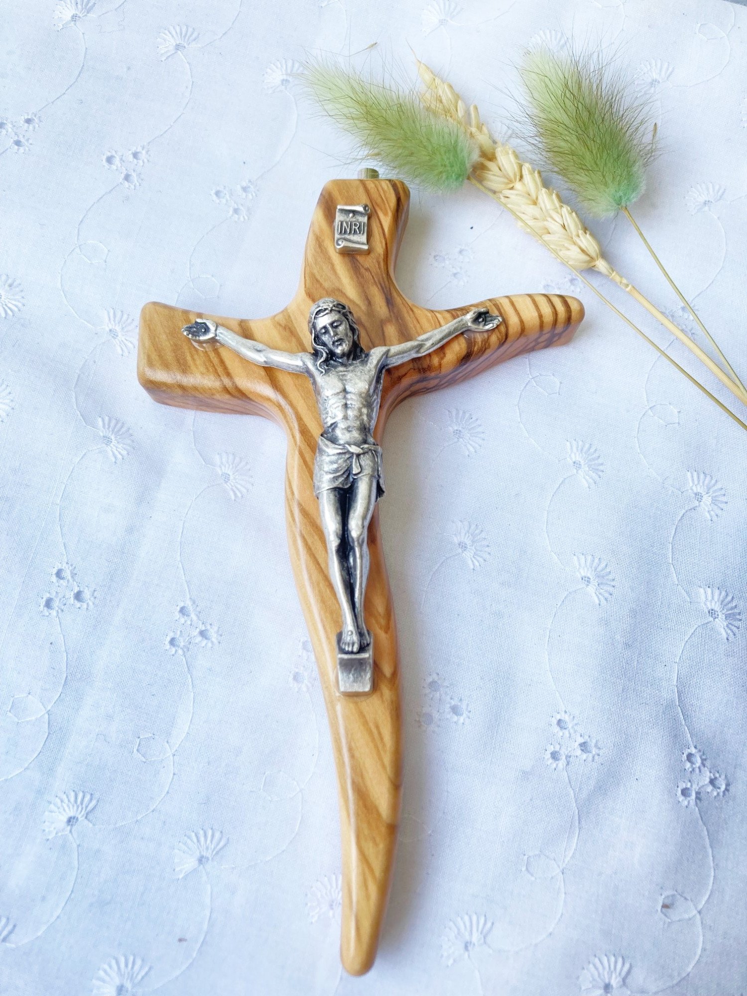 Très beau crucifix en bois d'olivier, modernisé, d'une hauteur de 12 ou de 16 cm.