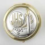 Très belle custode composée de métal doré et argenté, représentant une bougie ainsi que le symbole JHS.