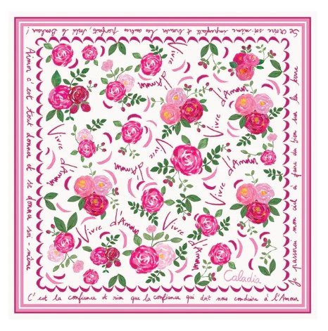Ses couleurs douces et vivifiantes égayent une tenue en toute simplicité. Une pluie de roses, en hommage à Sainte Thérèse de Lisieux, vient rappeler la fécondité de sa « petite voie ». Les phrases emblématiques de la sainte en font bien plus qu’un accessoire : un clin d’œil à la foi, discret et inspiré ! Une création Caladia-collections.