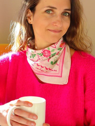 Offrir ou porter ce foulard, c’est choisir de faire mémoire de cette petite voie thérésienne, humble et lumineuse. Il peut être porté comme un signe discret d’appartenance à la foi, un appui pour la prière, ou un cadeau plein de tendresse à une amie, une filleule ou une sœur dans la foi.