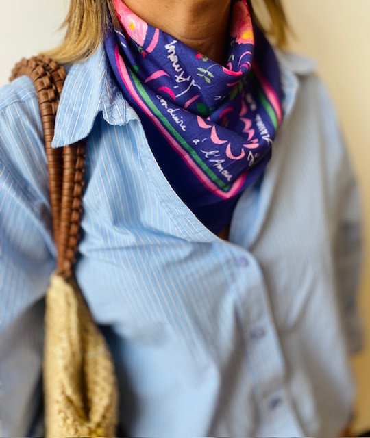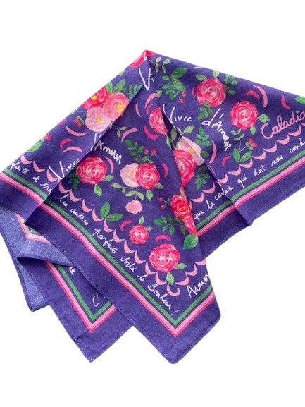 Égayé d’une pluie de roses en hommage à Sainte Thérèse, ce foulard conjugue élégance et simplicité. Plusieurs phrases emblématiques de la sainte de la « petite voie » y sont imprimées, telles que « Aimer, c’est tout donner et se donner soi-même » ou encore « Je passerai mon Ciel à faire du bien sur la terre ». Des paroles fortes, pleines d’espérance, qui résonnent comme une invitation à la confiance et à l’amour ! Une création Caladia-collections dont on est fan !