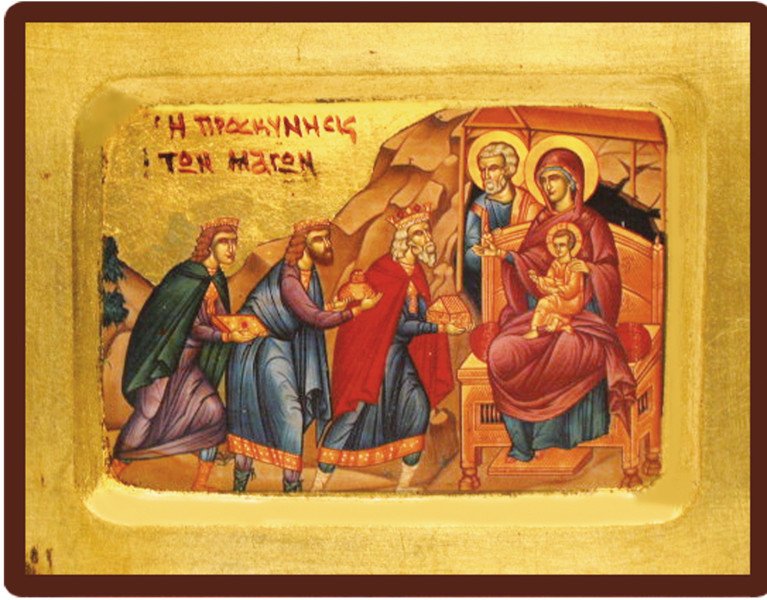 Découvrez cette magnifique icône creuse représentant les Rois Mages. C'est une icône traditionnelle creuse dont l'image a été imprimée sur un petit canevas qui a par la suite été doré à la feuille d'or. L'impression de l'image sur le canevas et les dorures ont été réalisées à la main, pour vous offrir un maximum de qualité et de résistance au temps. L'icône ayant été faite à la main de manière artisanale, les dessins sont donc susceptibles de varier d'un modèle à l'autre.