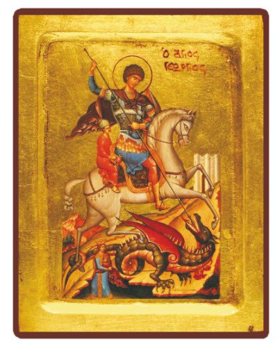 Découvrez cette magnifique icône creuse représentant Saint Georges, ou Georges de Lydda, martyr; Saint Patron de la chevalerie chrétienne, de la cavalerie dans l'Armée Française, du Royaume de Grande-Bretagne, de la Géorgie et du scoutisme !