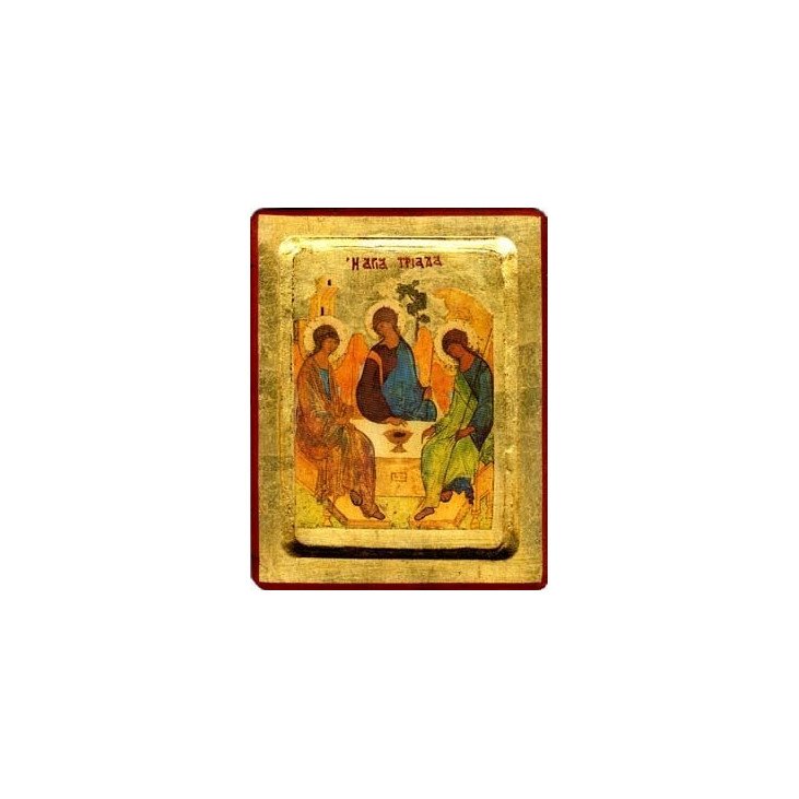 Découvrez cette magnifique icône creuse représentant la Sainte Trinité peinte par Roublev, moine et peintre d'icônes russe du XV siècle. C'est une icône traditionnelle russe dont l'image a été imprimée sur un petit canevas qui a par la suite été doré à la feuille d'or. L'impression de l'image sur le canevas et les dorures ont été réalisées à la main, pour vous offrir un maximum de qualité et de résistance au temps. L'icône ayant été faite à la main de manière artisanale, les dessins sont donc susceptibles de varier d'un modèle à l'autre. Cette icône est disponible en plusieurs dimensions :