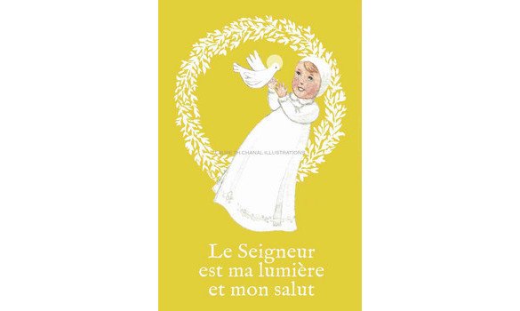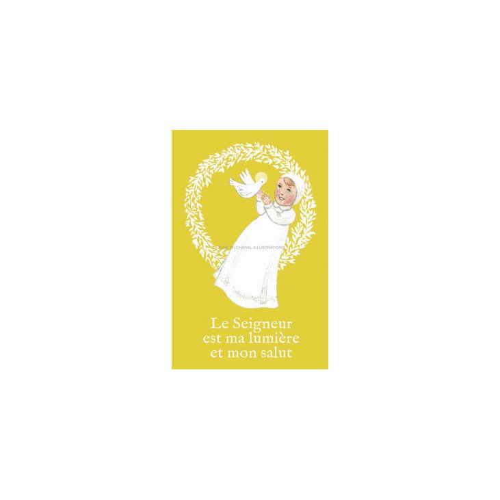 Offrez cette belle image "Baptême Lumière" représentant un nourrisson visité par la colombe de l'Esprit Saint, avec l'inscription : "Le Seigneur est ma lumière et mon salut".