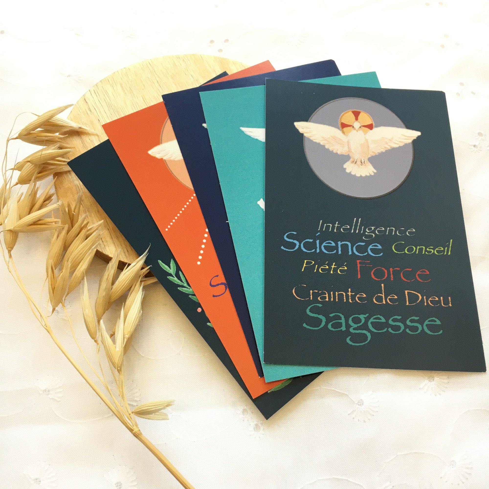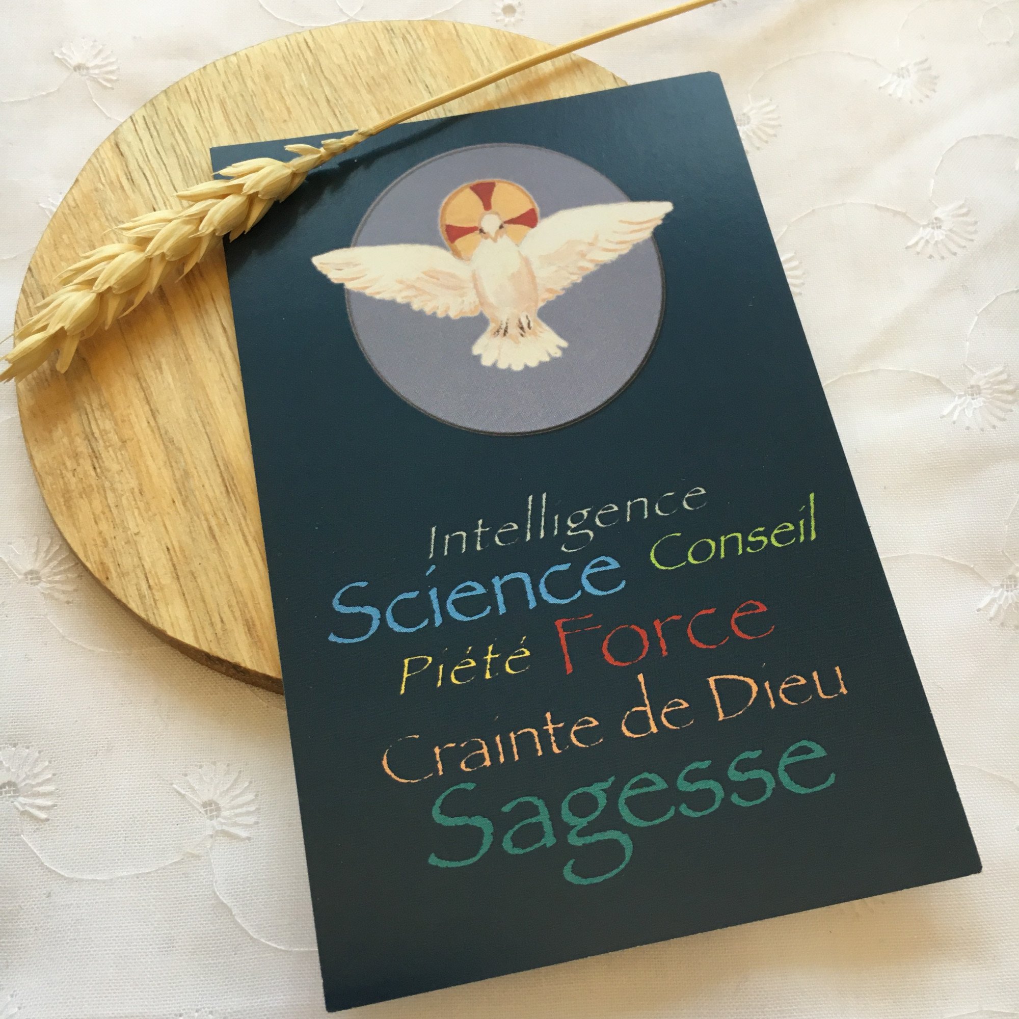 Vous souhaitez offrir un souvenir de la confirmation de votre enfant à ceux qui vous entourent ? Offrez cette belle image de confirmation représentant les 7 dons du Saint Esprit :