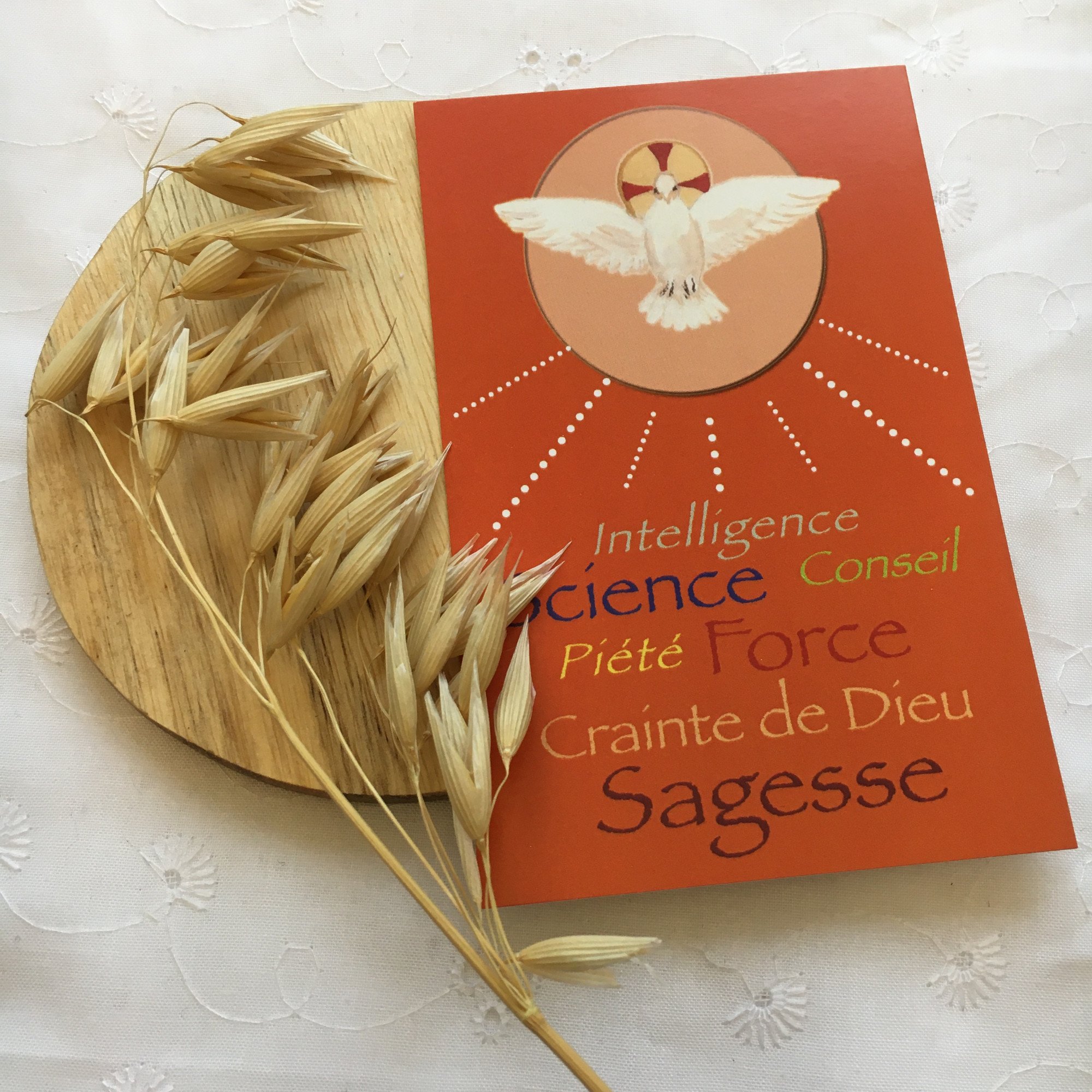 Vous souhaitez offrir un souvenir de la cérémonie de confirmation de votre enfant à ceux qui vous entourent ? Offrez cette belle image représentant les 7 dons du Saint Esprit :