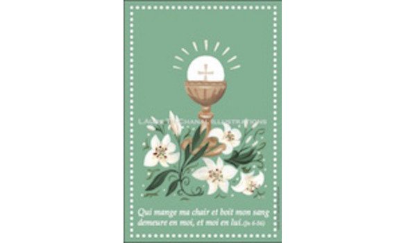 Offrez cette belle image de première communion représentant un calice entouré de lys. Elle sera un très joli souvenir du jour de la première communion de votre enfant.