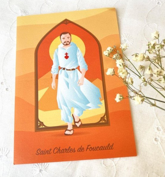 Dans cette même collection des Saints d'aujourd'hui, vous trouverez les cartes avec prière, les signets, et les chapelets.