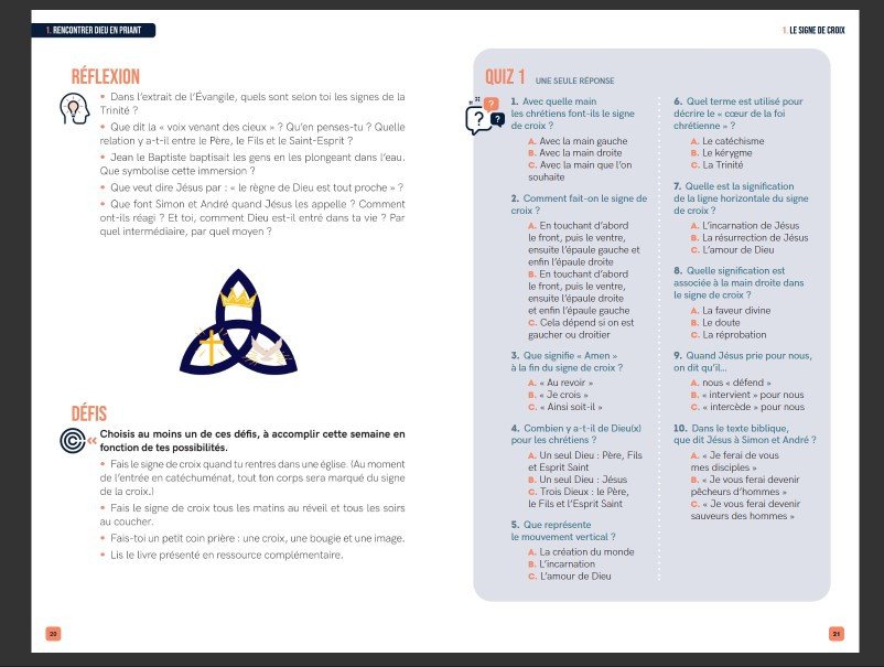 Destiné aux aumôneries, groupes de jeunes ou parcours individuels, il accompagne la formation chrétienne dans un esprit de vérité, de liberté et de confiance.