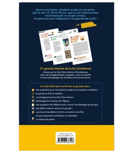 Vous cherchez un guide clair et structuré pour aider un jeune à mieux comprendre la foi chrétienne ? Ce livre propose de manière moderne et intéractive aux jeunes de 15 ans et plus un parcours solide pour découvrir ou approfondir les fondements du christianisme, à travers une démarche catéchétique fidèle au Catéchisme de l’Église catholique.
