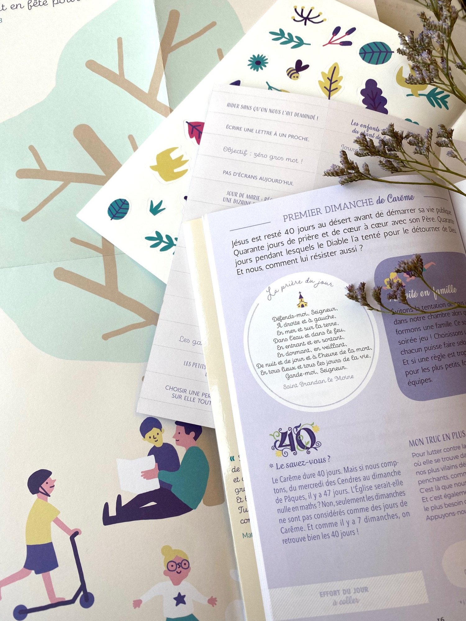 Un grand poster à compléter, 200 stickers, des cartes à piocher, des activités et des défis, des conseils spirituels, des prières...bref ! Avec Le chemin de Carême pour toute la famille, vous aurez un véritable accompagnement spirituel qui conviendra aux petits et aux grands comme aux parents, et qui aidera toute la famille à vivre cette période de Carême jusqu'à Pâques !