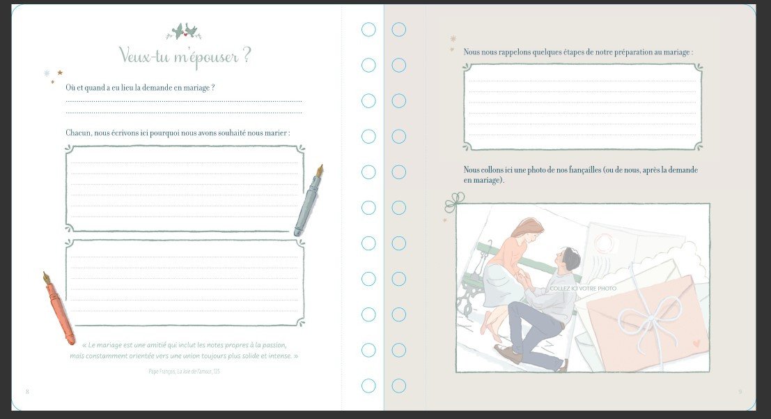 Conçu pour être rempli à deux, en amont ou en aval de la célébration, ce cahier personnalisable devient un véritable trésor de famille, témoin de l’amour reçu et donné devant Dieu.