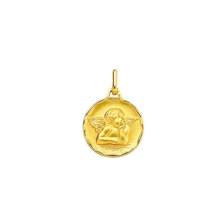Voici une délicate médaille Ange en plaqué or, avec bord irrégulier.