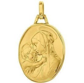 Médaille de la Vierge à l'Enfant de Boticelli ovale 18 mm en or 18 carats