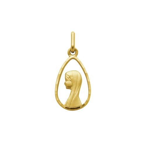 Médaille de la Vierge ajourée forme de goutte - plaqué or